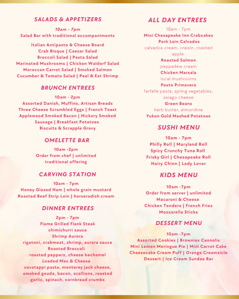 Chesapeake Inn's Menus