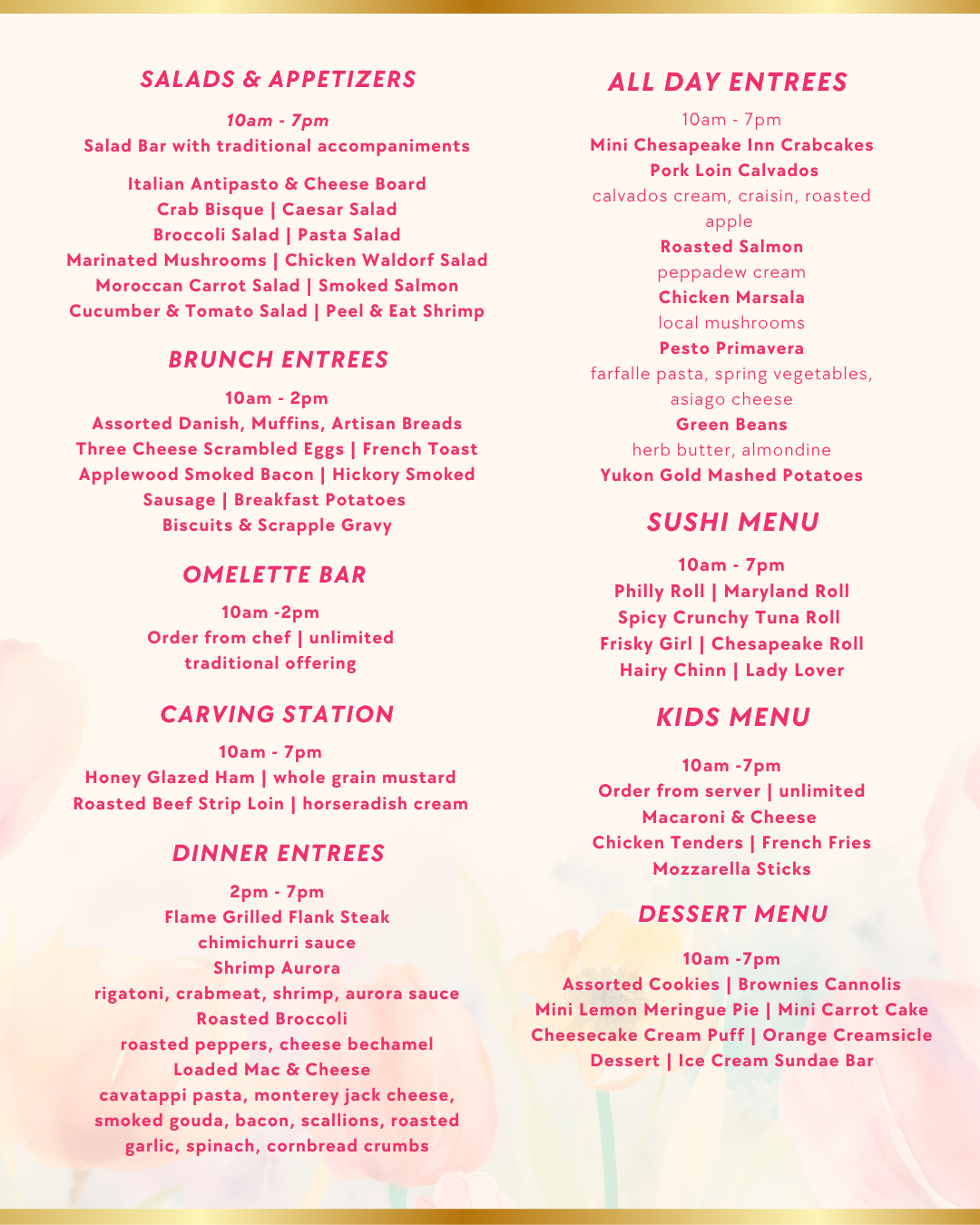 Mondays All Day Double Reward Points! Our reward members earn double loyalty points all day on Mondays by dining in at Chesapeake Inn or any of our sister restaurants; La Casa Pasta & Klondike Kate's.